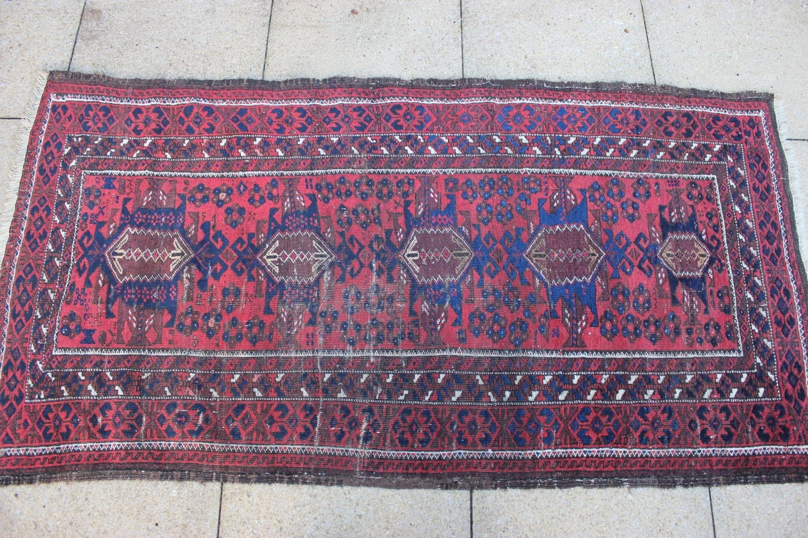 Antique Baluch rug from Khorassan N.W.Iran. Some wear in this rug but a very collectable piece.