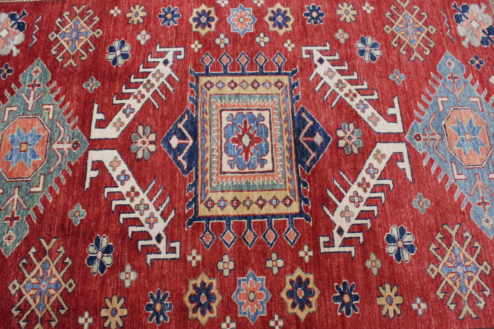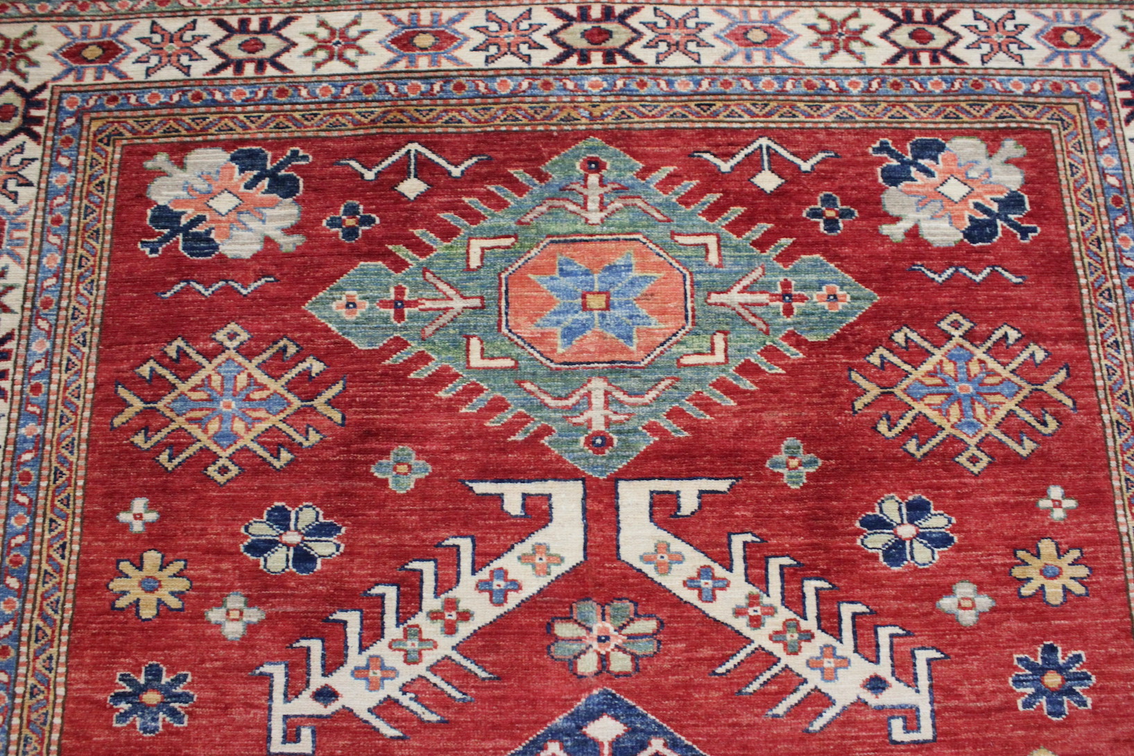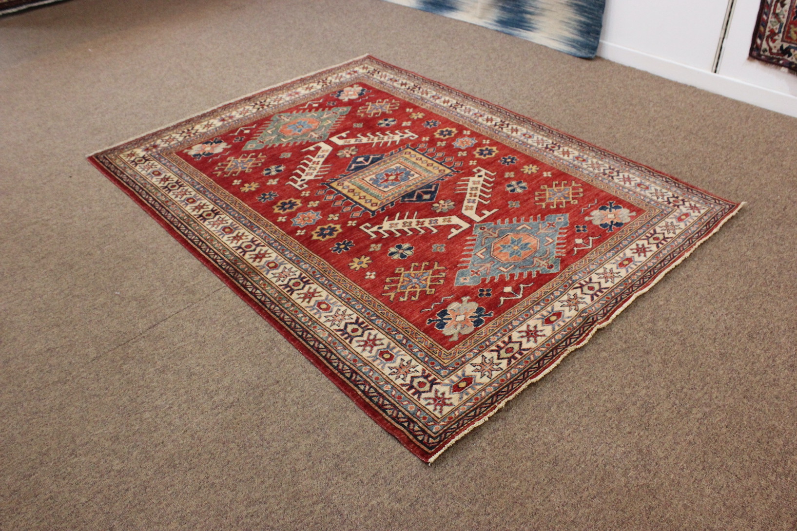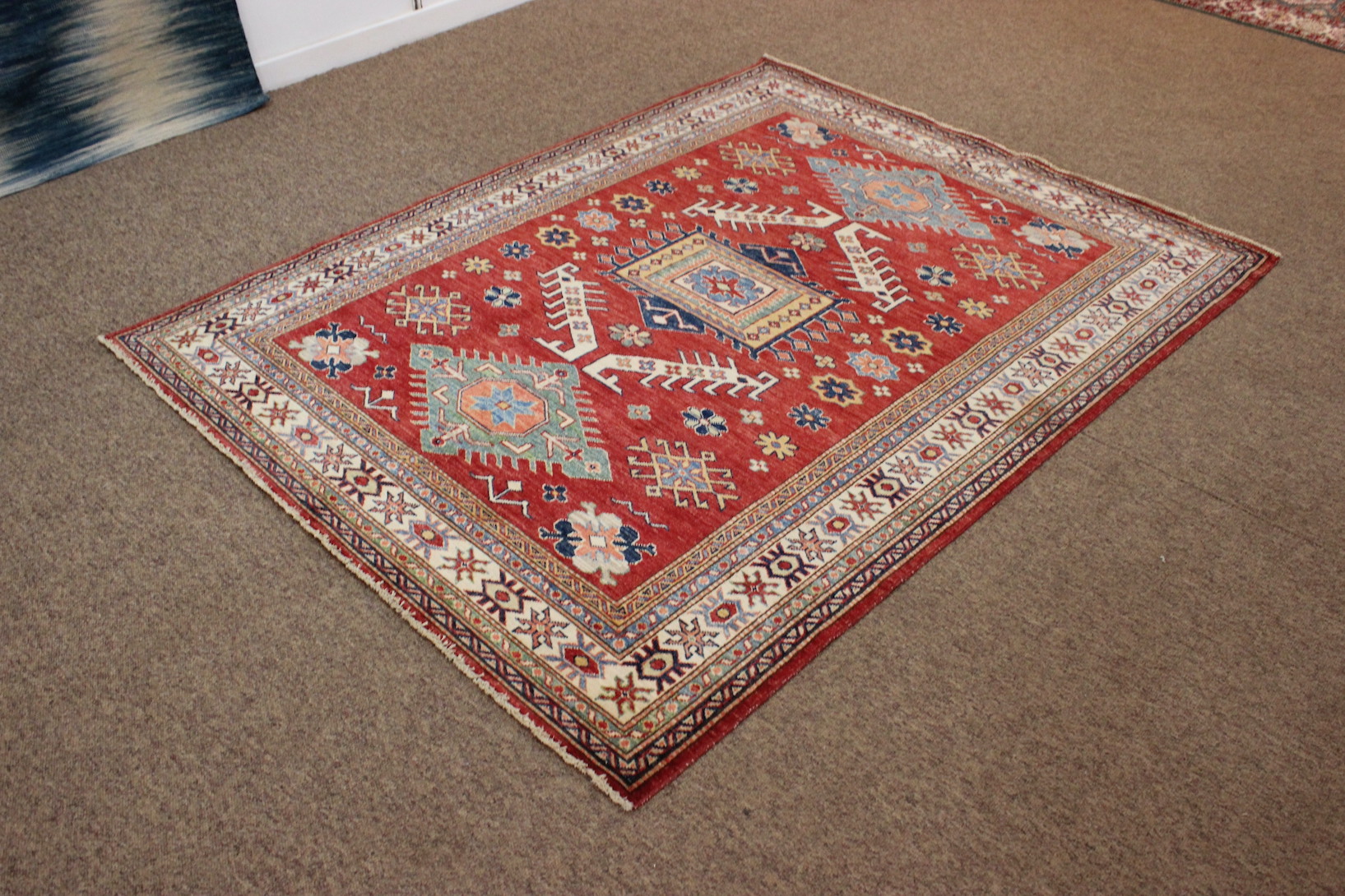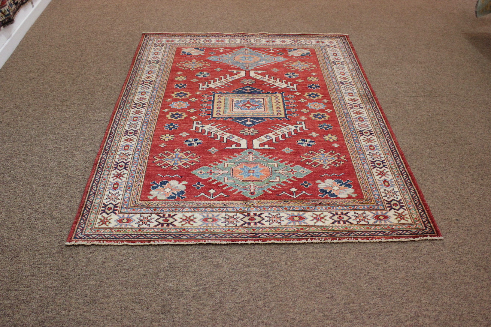 Just arrived in store this beautiful red ground Kazak with three central medallions.
