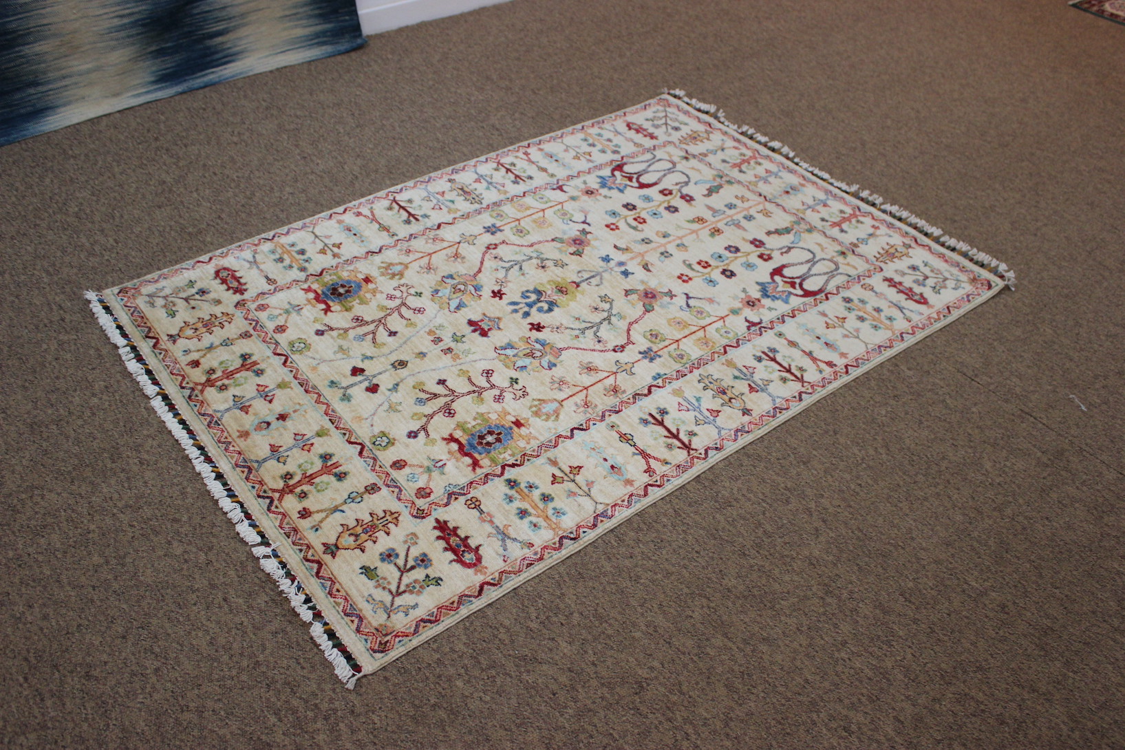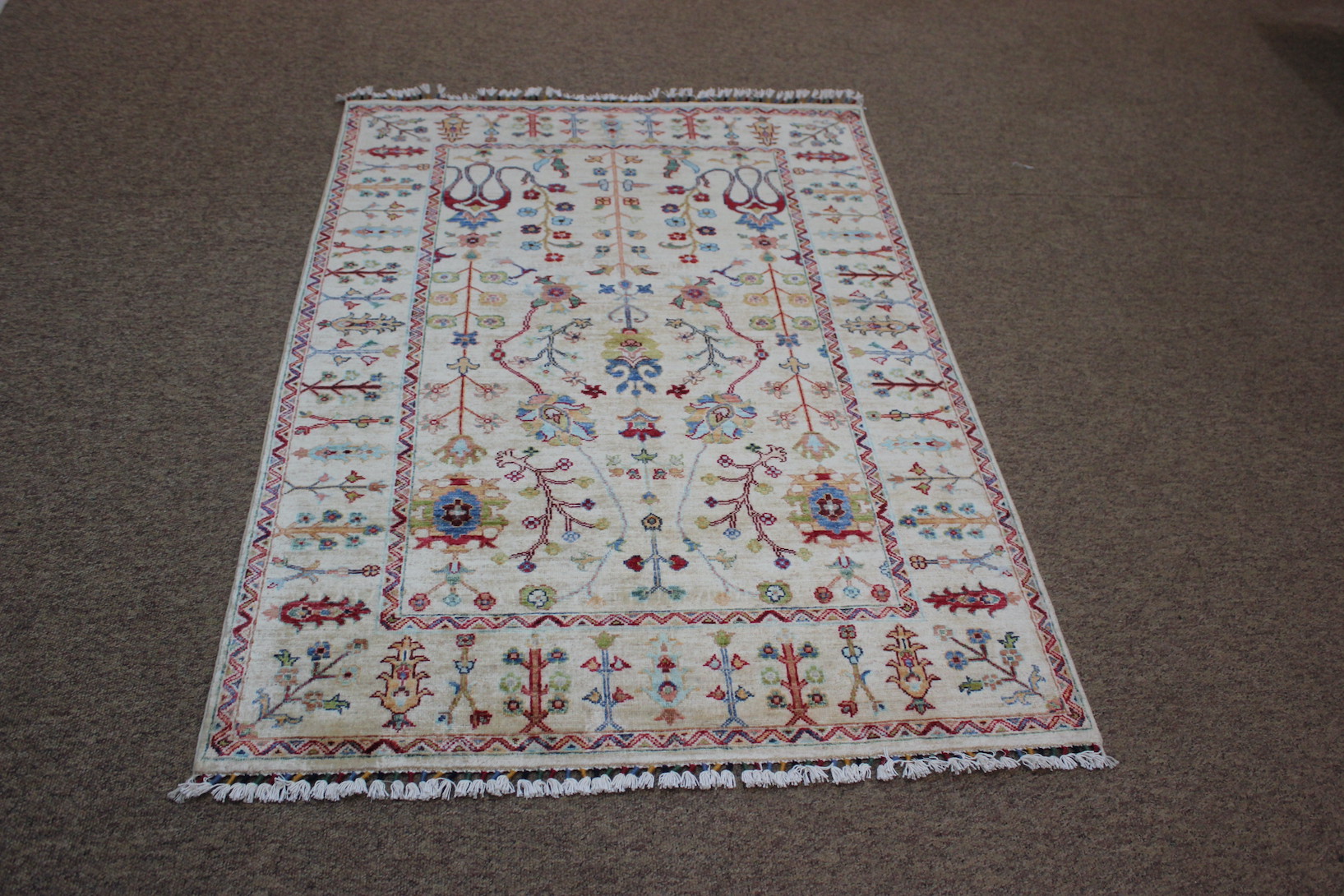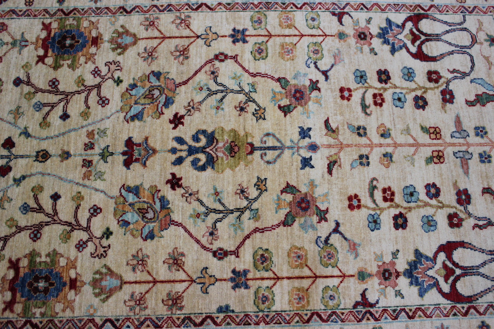 This lovely Ivory ground Sultani rug has arrived in store.