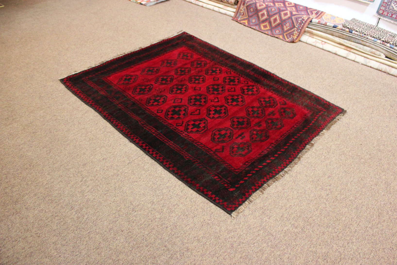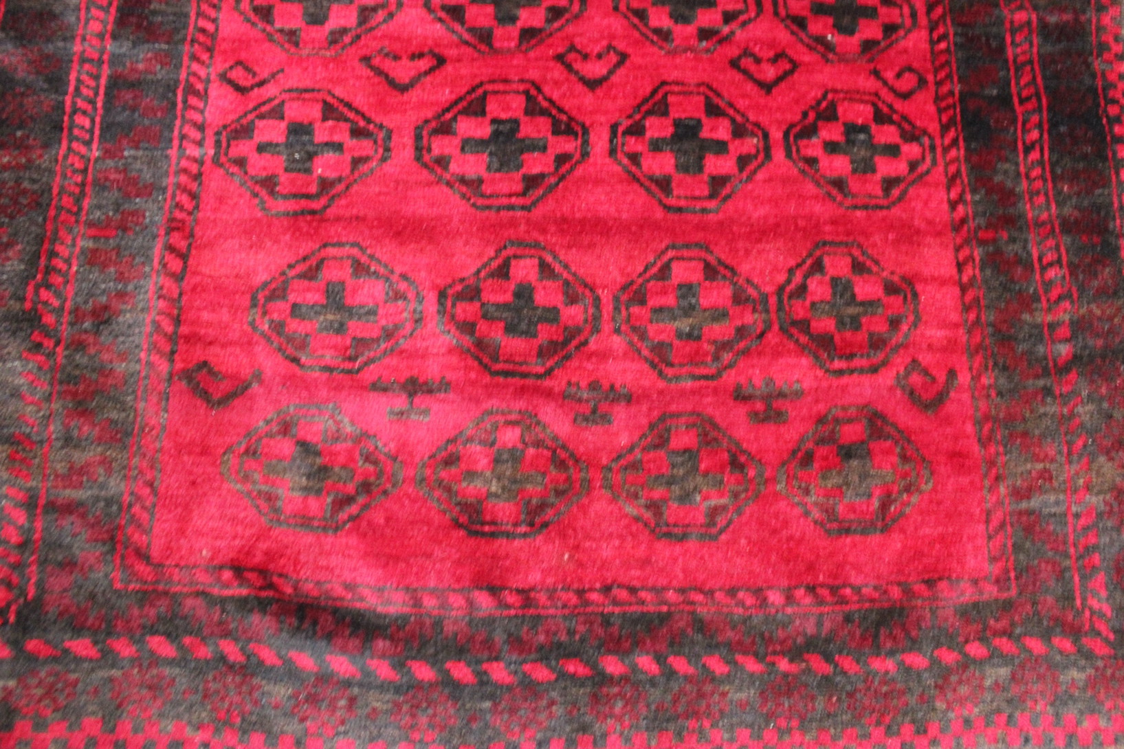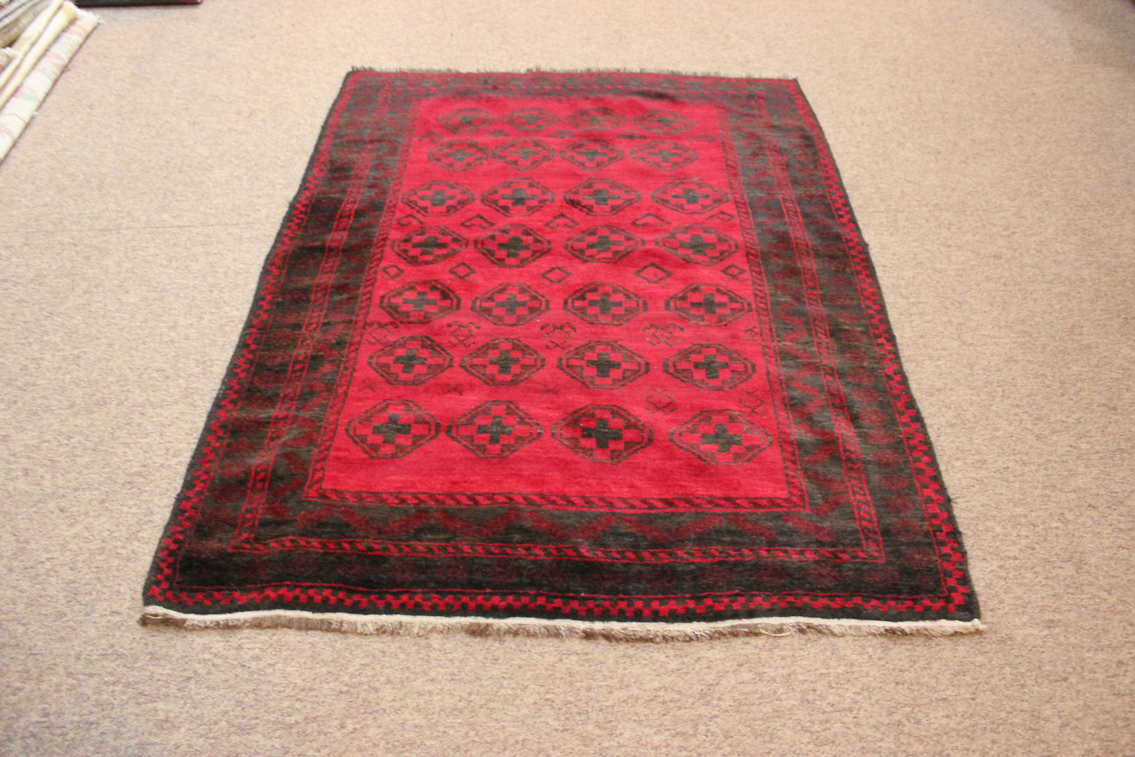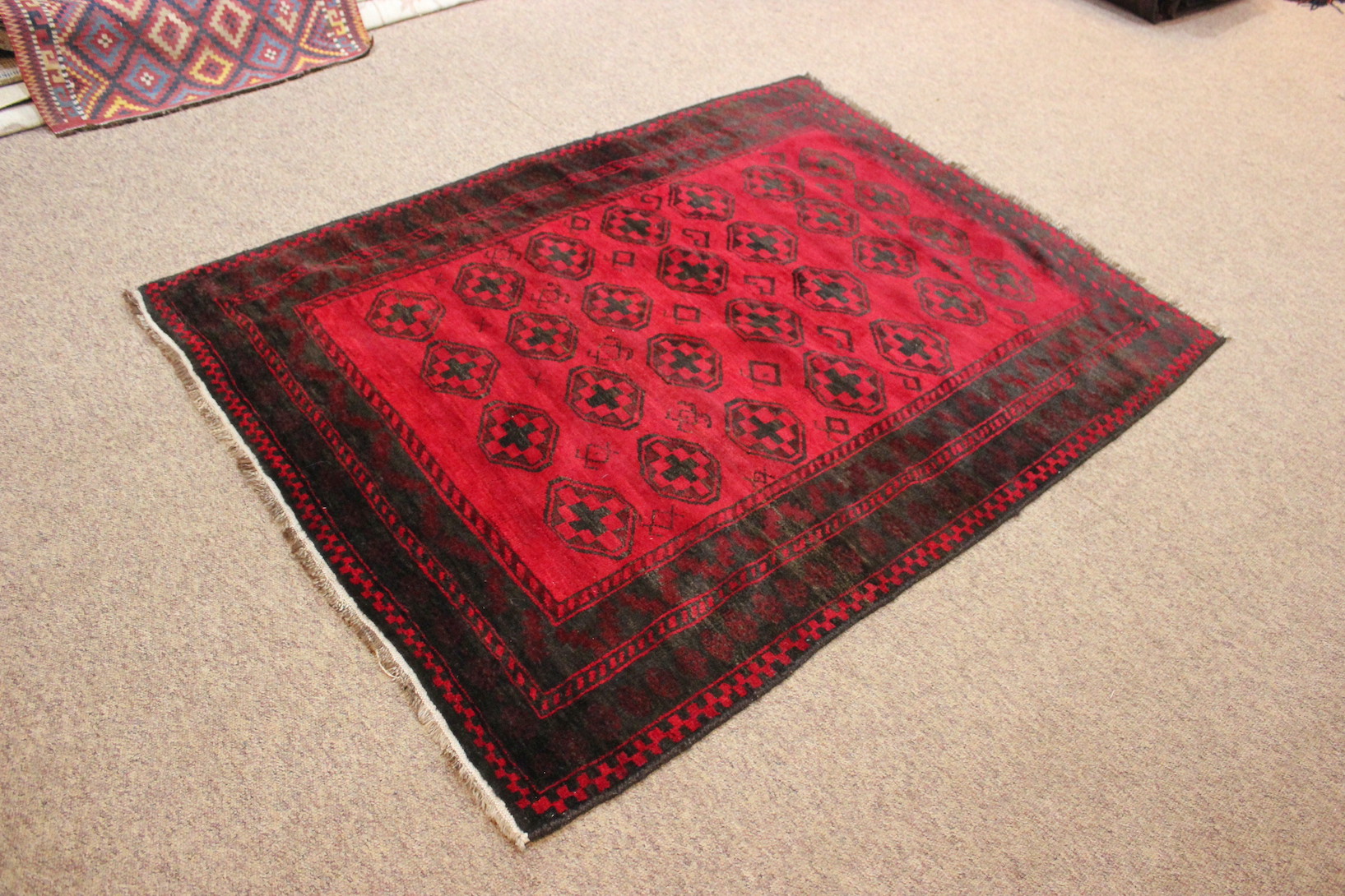 Here is a thick pile Nomadic Baluch rug with 4 rows of cross guls and a charming row of minor motifs depicting aircraft.