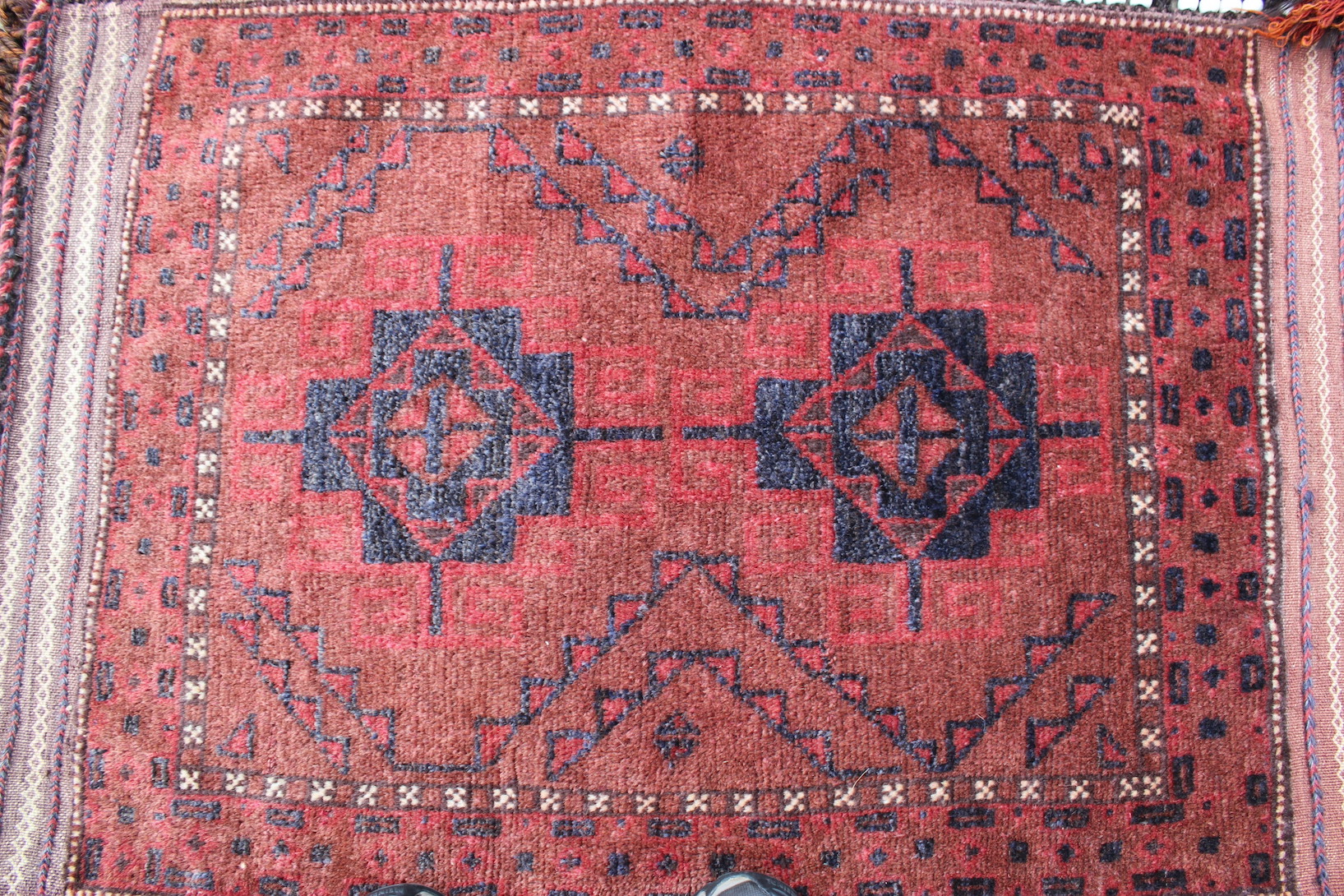 Lovely large tribal Baluch storage bag decorated with tassels and beads along one side.