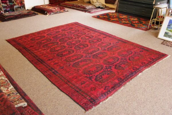 Wonderful village Turkmen carpet featuring the pendi gul motif.